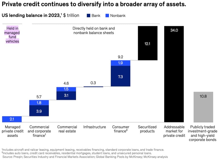 McKinsey (2024) also notes that private credit is expanding its reach into additional assets, suggesting that the size of the addressable market could surpass USD 30 trillion in the United States alone.