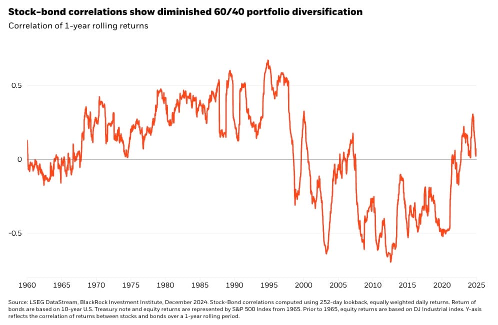 · BlackRock (2025), "Rebuilding Resilience in 60/40 Portfolios," March 2025.